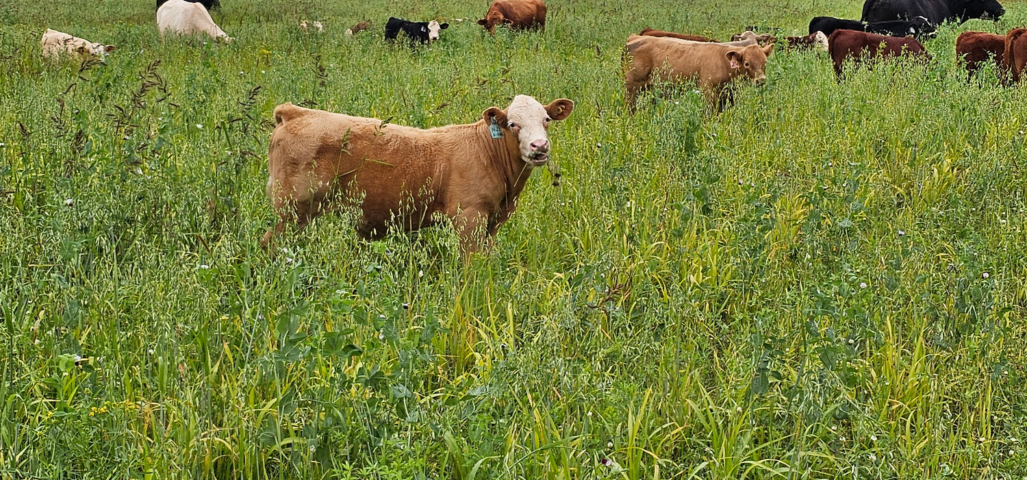 We use minimum tillage, forage cover crops and practice adaptive grazing to ensure happy healthy Cattle and Soil